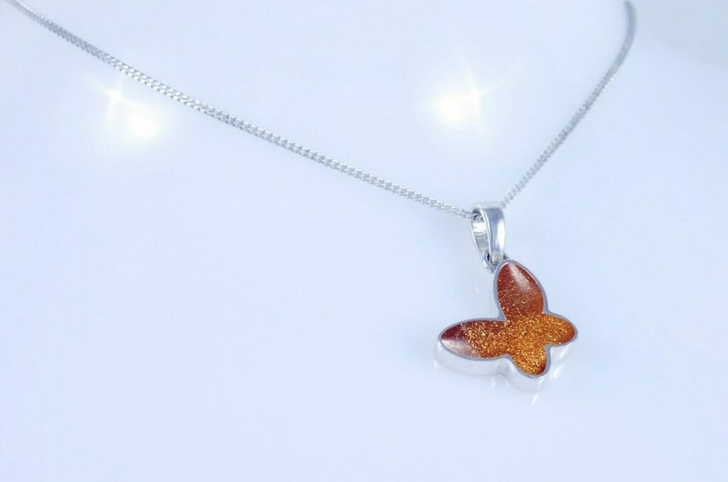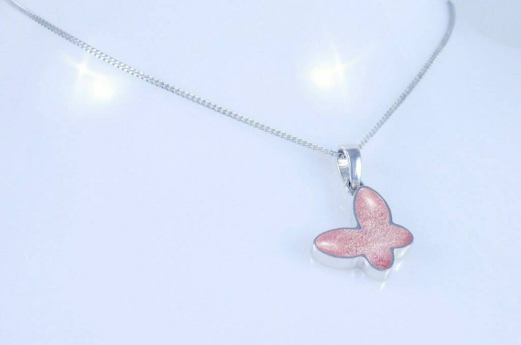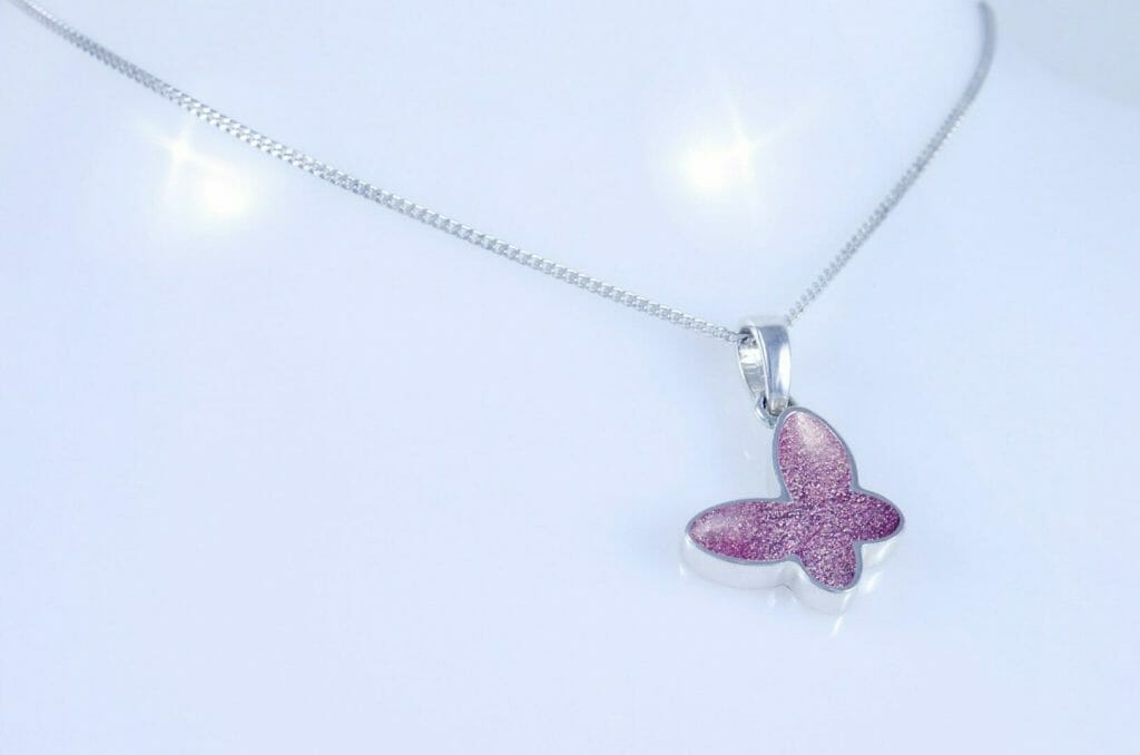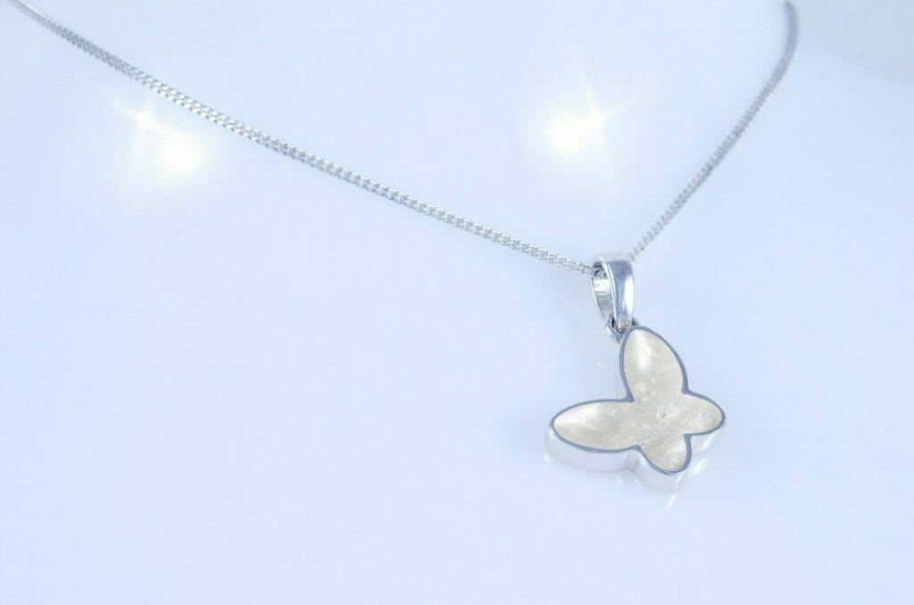 Our Butterfly Pendant, is a beautiful and comforting way to keep your loved one close, always. Crafted in 925 sterling silver, this delicate Butterfly pendant holds a small amount of cremation ashes. As a result, it becomes a timeless and meaningful memorial keepsake.
